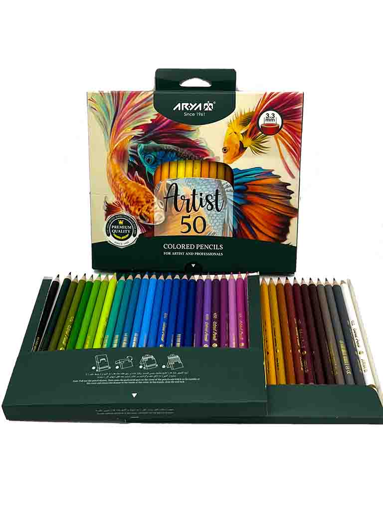 مداد رنگی ۵۰ رنگ آریا مدل آرتیست | انتخاب حرفهایها برای رنگآمیزی بینقص