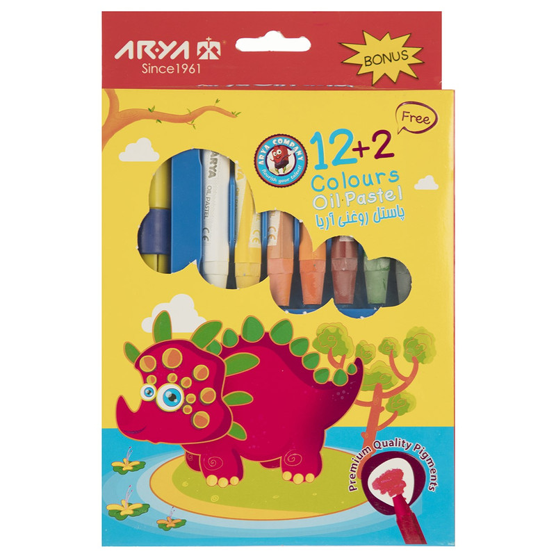 پاستل روغنی ۱۲+۲ رنگ آریا | رنگآمیزی نرم، براق و ایمن برای کودک شما